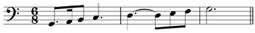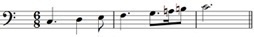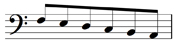 The letter, f, in a stylised form and in a mirror image, is now used as the bass or F clef.It signifies that a note placed on the second line from the top is F, and specifically the F below middle C (see Example 5).
