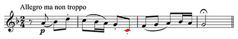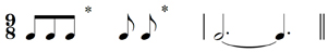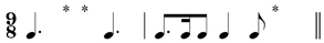 The position of the dot is crucial. Below or above the note head signifies that this dot is a sign for staccato. A dot after the note head means that it is associated with rhythm – the note’s rhythmic value would then be lengthened by a half. A tenuto mark is a short line, not a dot, either above or below the note head.
