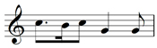While this separation of the upper and lower staves is a good idea because it helps visual orientation, it has a drawback. And that is that middle C can be notated on both staves, in different positions on each staff. Example 7 shows that (i) the different visual positions of middle C on each staff represent one and the same sound and (ii) the gradual incline of the pattern of the notes as the pitch rises is fractured temporarily.