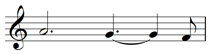 Although the time signature has two minim beats, it is easier to work out the required rest by counting in crotchets. In bar 3, the first C tied to the second produces a dotted crotchet and this is followed by another dotted crotchet. The two dotted crotchets added together equal three crotchets. Therefore we need a crotchet rest to make up a total of four crotchets for the bar.