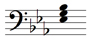 Tonic triad in E flat major. The key signature of three flats signifies the major key of E flat major. Bearing in mind that this is the bass stave, the notes of the triad, the root, third and fifth, are E G B, which means that this is the tonic triad in E flat major.