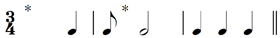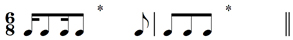 The sign above the G is a pause mark. Refer to Special signs  for the sign for getting gradually softer (a ‘hairpin’), and the sign for an accent.