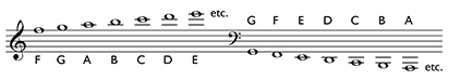 As Example 4 shows, the other notes are named with letters from the alphabet, A–G, with A returning after G has been reached.