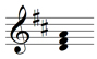 Subdominant triad in A major. The key signature of three sharps signifies the major key of A major. The notes of the triad, the root, third and fifth, are D F A. Since the root, the D, is the fourth above the tonic, A, it is the subdominant note, and therefore the triad is the subdominant triad in A major.