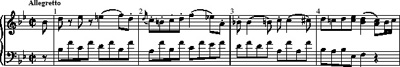 Listen carefully to the passage from the Piano Sonata in C, K309, several times, whilst following the score given in Example 4.