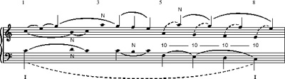 Schenker's ideas have been extended, codified and debated, first by his friends and pupils, many of whom fled to America at the outbreak of the Second World War, and latterly by American, British and other scholars of music worldwide. Many articles in specialist journals such as Music Analysis in the UK and Music Theory Spectrum in the USA now assume an acquaintance with Schenker's ideas, methods and notations. His analytical method has been one of the most important topics in the theory of music since about 1970, and its applications within and beyond the field of tonal music are widely (and sometimes heatedly) discussed. As a result, the type of activity referred to as ‘voice-leading analysis’ in this course is often called ‘Schenkerian analysis’ by other writers (although the notations I will be using are not identical with those used by Schenker).