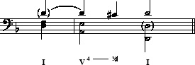 Example 6a shows a cadence typical of Bach's practice, slightly adapted from the Sarabande of the Second Suite for solo cello. On paper, the cello part looks almost bizarre: the melody leaps downwards by a fourth, then upwards by a fifth and a seventh. Yet, as always in Bach, the aural effect is supremely logical, since the D resolving to C# in the upper register is supported by A in the bass and E in the tenor: a simple cadential 4–3 suspension.