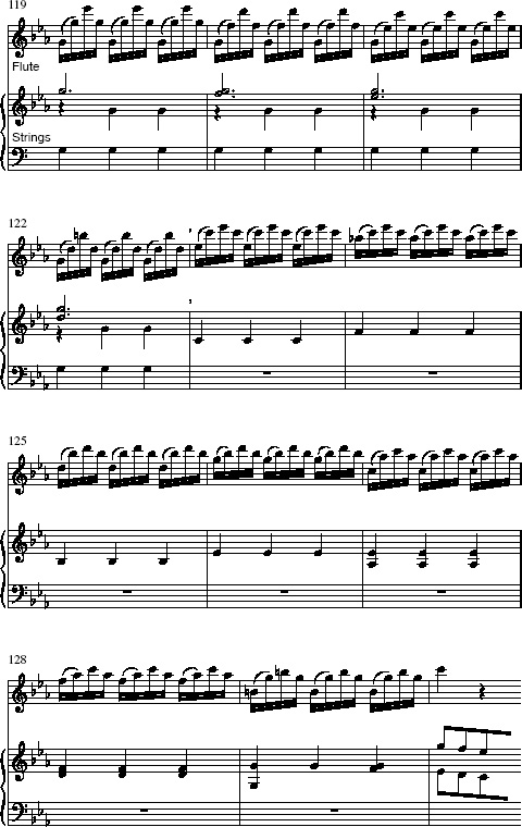 Listen to Extract 2, from a flute concerto by Vivaldi, following the score given in Example 4. How many strands can you hear in the flute's melody line?