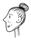 Con i capelli puntati in cima alla testa.