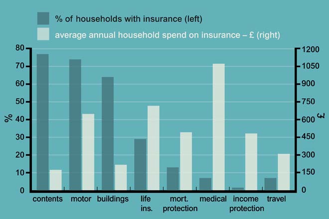 Figure _unit8.2.2 Figure 2 Household expenditure and purchase of insurance products in the UK, 2011 (ABI, 2013)