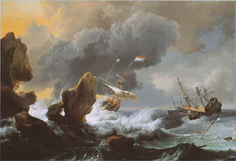 Figure 24 Ludolf Backhuysen, Ships in Distress off a Rocky Coast, 1667, oil on canvas, 114 × 167 cm. National Gallery of Art, Washington, DC, Ailsa Mellon Bruce Fund, 1985.29.1. Photo: courtesy of the Board of Trustees, National Gallery of Art.