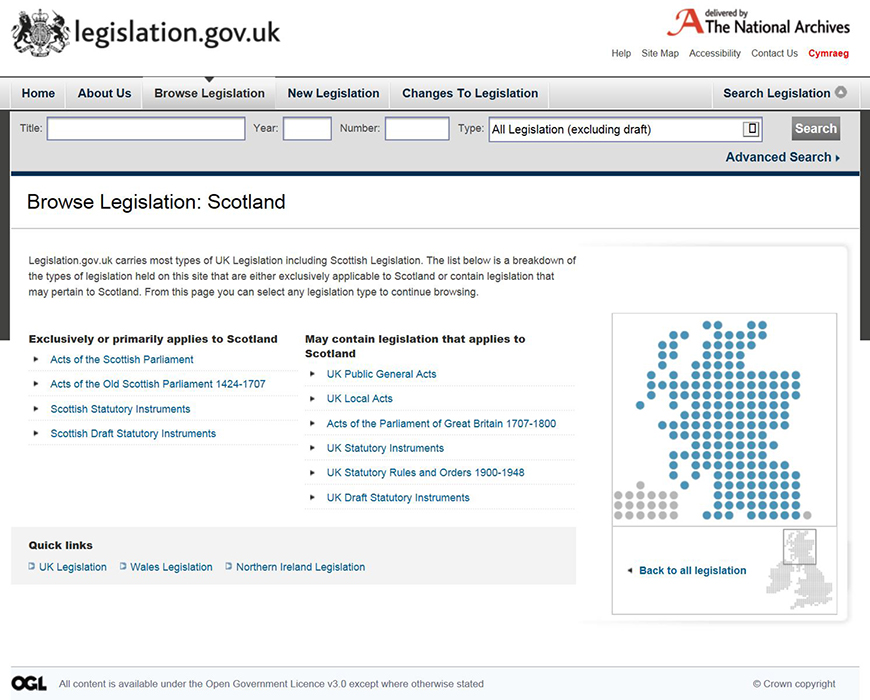 Figure 11 Selecting the Scotland tab on the home page leads to this and then selecting UK Public General Acts