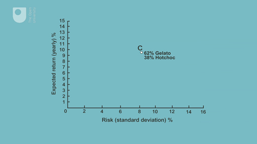 In the previous section, we looked at the risk–return trade-off between Gelato and Hotchoc. However, by combining the two shares in a portfolio, it is possible for the investor to reach a better outcome. Watch this short animation about portfolio theory: