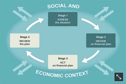 Look again at the familiar model and apply it to insurance. But remember that in practice financial planning needs to be a flexible process, with movement back and forth between the stages.
