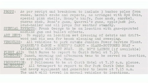 Take a look through this video slideshow. It contains excerpts of documents from the Dr. No production.