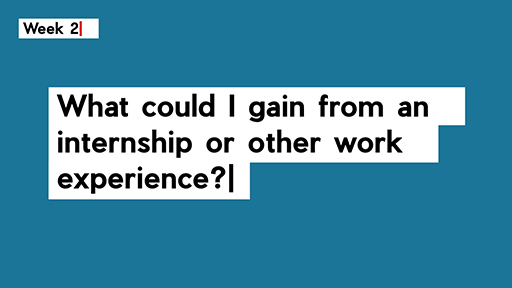 This week, you’ll focus more specifically on the benefits of undertaking an internship or other form of work experience. You’ll learn about the skills you can develop, how your confidence can grow and the value of building a network of useful contacts.