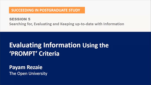 Hello and welcome. This slidecast will give you some useful tips on evaluating information using the ‘PROMPT’ Criteria. ‘PROMPT’ is a framework for evaluation developed by the Open University. It’s a useful way to systematically assess the credibility and potential value of any information or resource that you come across online.
