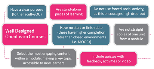 There are a number of guiding principles for OpenLearn courses, we have a wide range of courses on the platform and this is inline with our users and OU guidelines.