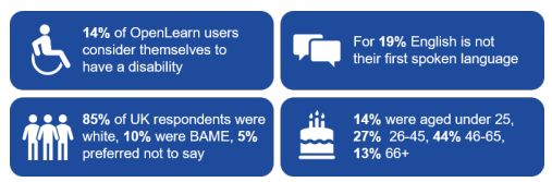 In November-December 2020 we conducted the 5th OpenLearn platform survey to find out more about who our audience is, what their motivations are, and their desires for learning. We received more than 6,600 responses, including more than 800 from Open University students. A summary of some key findings from the survey is shown here.