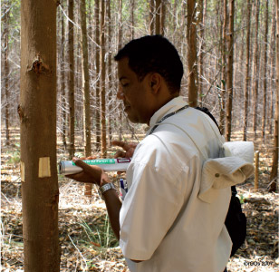 Instrument used to measure the density and strength of wood without the need to extract samples.