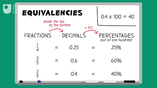Knowing the common equivalencies between fractions, decimals and percentages is important when trying to compare discounts when shopping or choosing a tariff when paying your bills.