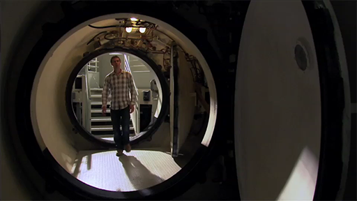 The video shows Jem Stansfield looking around the Zwentendorf nuclear power plant in Austria.