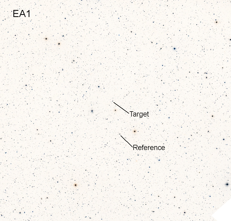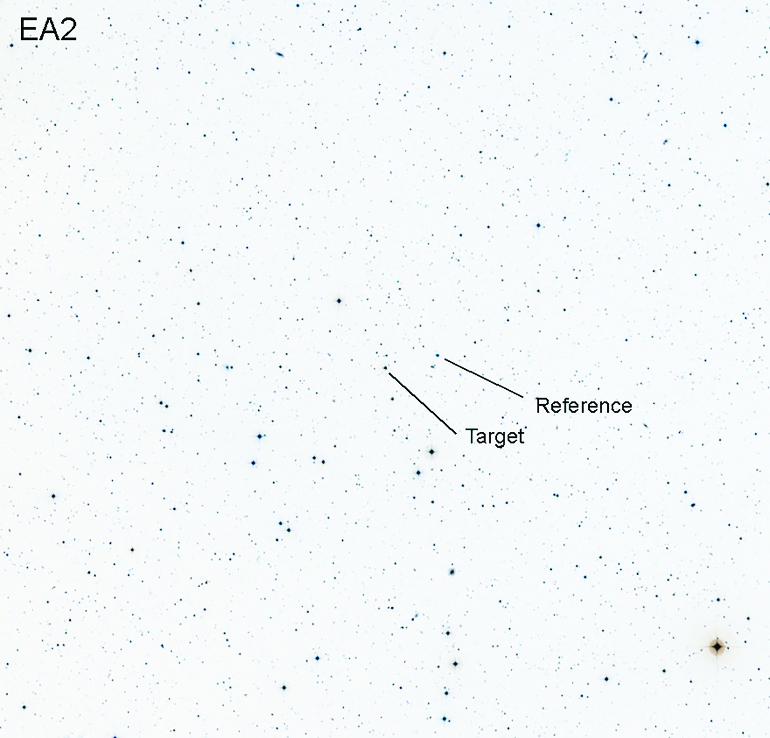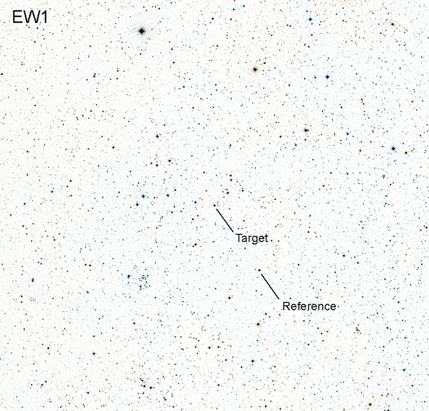 First, take a look at the finder chart and image in Figure 2 and see if you can identify the target and reference stars: