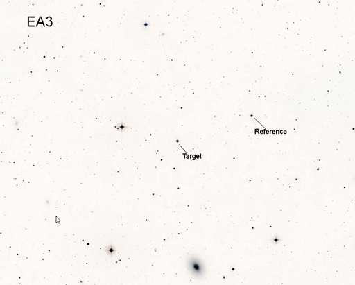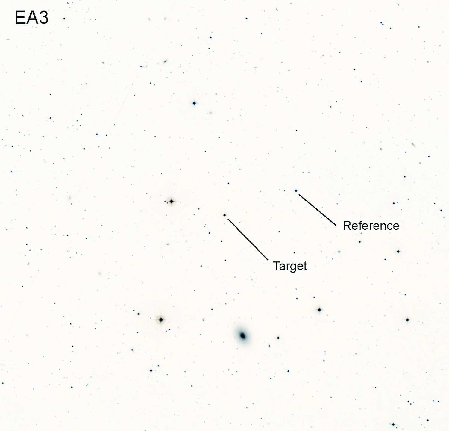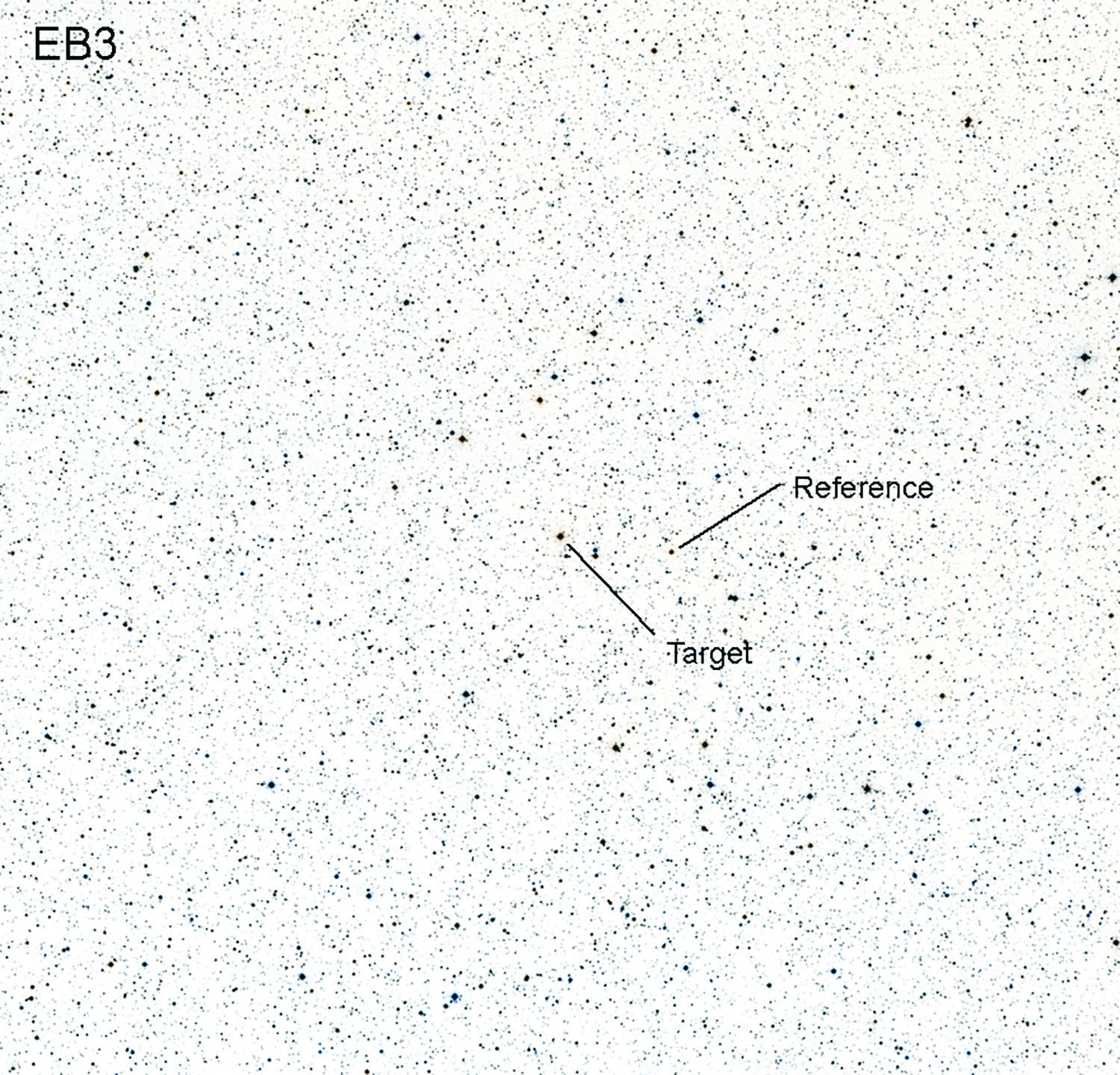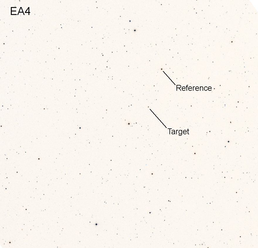 First, take a look at the finder chart and image in Figure 2 and see if you can identify the target and reference stars: