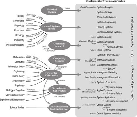 Many well-known systems thinkers also had particular experiences, which led them to devote their lives to their particular forms of systems practice. So, within systems thinking and practice there are different traditions, which are perpetuated through lineages (see Figure 1). Some of these key systems thinkers mentioned in Figure 1 developed their forms of practice in terms of developing (and having their name associated with) formalised systems or systems-related approaches or methods, a topic you will be looking at again in more detail in Week 7.