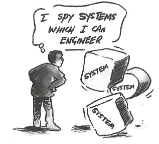 An aware practitioner-as-manager, having chosen to take a systems approach, will always face choices. One of the main choices is whether to formulate a system of interest as part of a process of understanding a situation experienced as complex, a systemic process of inquiry, or to see systems as operational parts of a taken for granted ‘real world’. This choice is depicted in Figure 2 with respect to the stick person cartoons used in the introductory videos for many of the weeks and also in the two other cartoon images you will have seen earlier in the course.