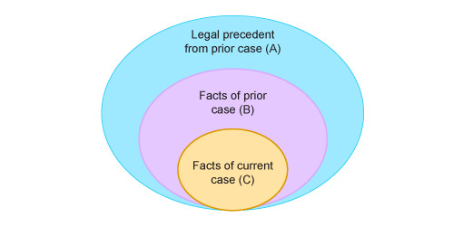 The operation of judicial precedent can also be structured in the form of a syllogism. The prior case that has created the precedent is the source of the general rule and the facts of the current case fit within the facts of the prior case, meaning that the facts of the current case also fit within the same general rule.