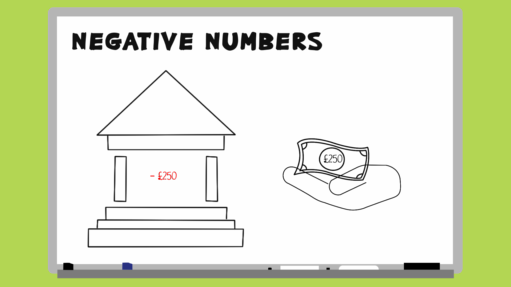 Negative numbers come into play in two main areas of life: money and temperature. Watch the animations below for some examples.
