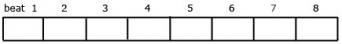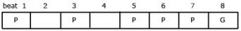 We need next to look at how the gong and jengglong parts fit together. Figure 4 below reproduces the gong player's part laid out above the corresponding beats of the jengglong player's line. The lower part of Figure 4 shows a different way of laying out the same information, incorporating the two parts into the same notation. Notice that the beat divisions have been changed to give 4 sets of 2 beats per line, instead of 8 single beats per line. In effect this is simply a change to give us a neater and less cluttered form of notation. This style of presentation will be helpful as we look at adding yet more instrumental parts to the music.