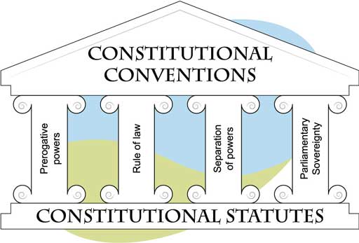 Returning to the image of the UK’s constitution, constitutional conventions can be seen as the counterpart to constitutional statutes. Constitutional statutes and conventions form an essential part of the UK’s constitutional framework, so conventions have been added as the roof of the building.