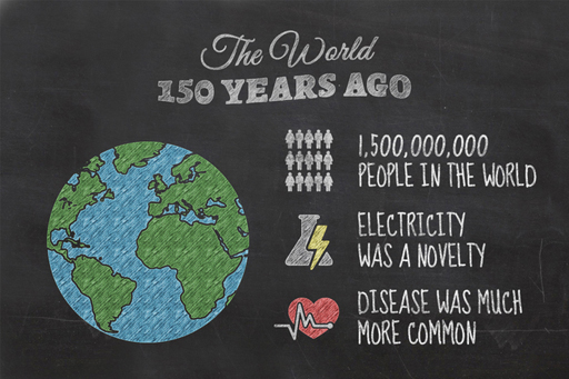 That was a world of about one and a half billion people (1,500,000,000, a number that you’ll be able write in scientific notation later this week), compared to over seven billion people (7,000,000,000) today. Infant mortality was high, with somewhere between 10 and 15 out of every 100 babies dying before their first birthday. Disease was much more common, and even just over 150 years ago in 1854, over 600 people died in an outbreak of cholera in Soho, London, at a time when science didn’t understand what caused disease. Perhaps more impressive and deadly was the influenza outbreak of 1918 that killed at least 50 million people (50,000,000), which was 3% of the world’s population at the time.