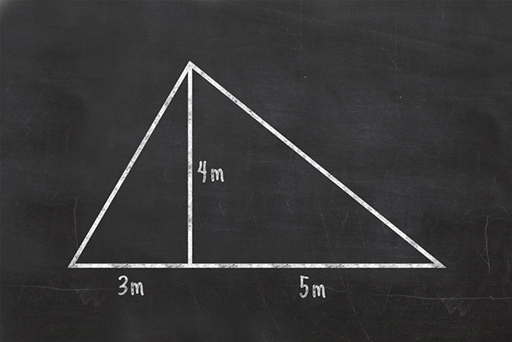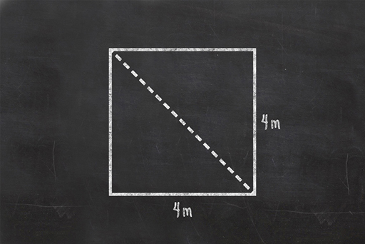 Areas of squares and rectangles are fairly easy, but what about other shapes? It turns out that for a lot of simple shapes, there are some very simple methods that have already been shown to work. You can make a triangle by folding a square down the diagonal between two opposite corners. This square has an area of 4 m × 4 m = 16 m2 so each of the triangles is half that area or 8 m2.