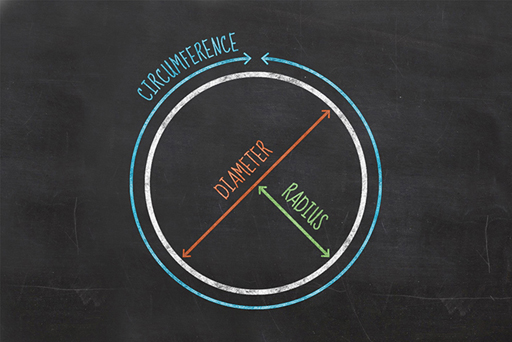 The circumference of any circle is always 3.14 times its diameter … well roughly that. It is actually an unending string of numbers after the decimal point: 3.141592653589793238462643383279502884197169399375105820974944 … . It has so many numbers in it that we make life easier by giving it a name instead. We call it pi, which is a Greek letter that is often written as π.