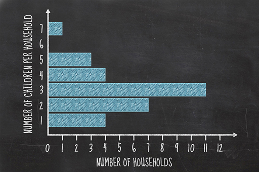 Media graphics and graphs come in many forms. This is a bar chart presenting the absolute numbers of children in families (not fractions or percentages). These charts can be drawn with the bar displayed either horizontally or vertically. When the bar extends horizontally, they may also be known as ‘row charts’ and when the bar extends vertically, they may be known as ‘column’ charts’.