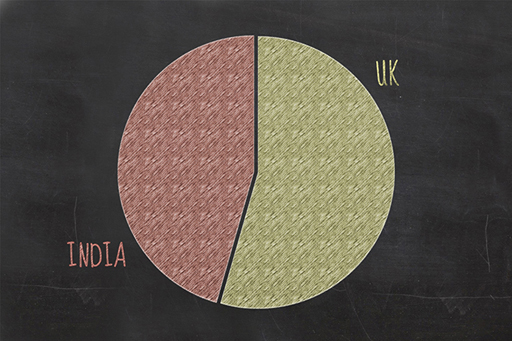 The UK slice of the pie chart forms a greater proportion of the whole, meaning that on average the UK is wetter than India, although the difference between the two is perhaps less than you might have expected. In fact, this is one of the things that make them an interesting comparison, two countries, each with a very different climate but similar total rainfall. If you calculate each as a percentage, you can see that the UK makes up 55% of the graph, whereas India makes up the remaining 45%. This chart is a perfect example of how graphs can be used to mislead an audience – the rainfall of the UK and India are not dependent on one another.