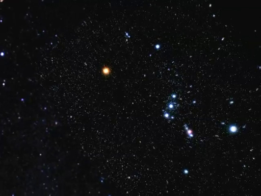 The following video, which has no sound, zooms into the Orion Nebula, moving from images of the whole Orion constellation in the night sky, to pictures taken by the Hubble Space Telescope of the Orion Nebula, showing its swirling clouds of gas and dust. Embedded within the clouds are newly forming stars and planets, as well as older stars and the remains of dead and dying stars.