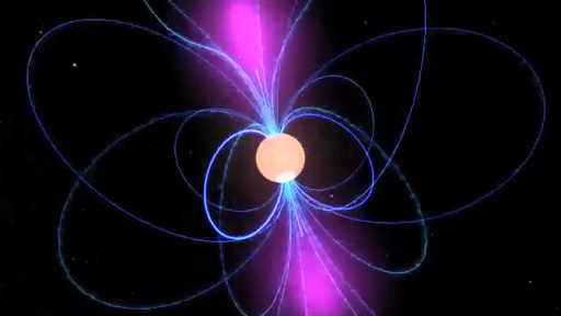 Another extreme property of neutron stars is the rate at which they rotate, up to several hundred rotations every second. Imagine watching a skater spinning. As they pull in their arms, the rate at which they spin increases. This is exactly the same phenomenon that takes place during the collapse of the remnant which leads to the formation of a neutron star. The comparatively slow rotation of the original star rapidly increases as the star contracts by a factor of almost a million.