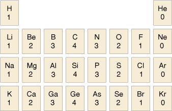 The usual valency values of some elements are shown in Table 2. You should note the pattern here compares with the layout of the periodic table.