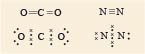 In carbon dioxide, the two electron pairs between each oxygen atom and the central carbon atom represent each carbon-oxygen double bond.