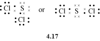 In these Lewis structures, oxygen attains the neon configuration, and sulfur and chlorine the argon configuration. When drawing Lewis structures, shape is unimportant; the important point is to show the correct number of bonds (shared electron pairs) formed by each atom. As either form of structure 4.17 does the job, both are acceptable.