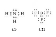 As you have seen already, ammonia (NH3) comprises three electron pair bonds to hydrogen atoms and one non-bonded pair being allocated to nitrogen (Structure 4.14). And in the last section you also saw that the Lewis structure of boron trifluoride left the boron atom two electrons short of a noble gas configuration Structure 4.21.