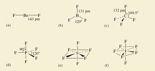 The examples you will be looking at are: BeF2, BF3, CF4, PF5, SF6 and IF7; their shapes, which have been experimentally determined, are shown in Figure 7.