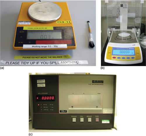 There are two types of balance: the general-purpose (or top pan) balance (Figure 2a) and the analytical balance (Figure 2b), of which the microbalance (Figure 2c) is a specific type.