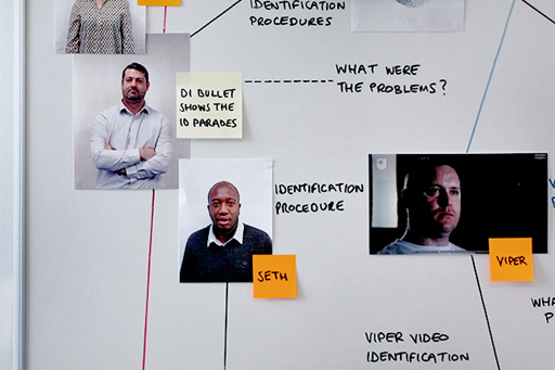 Next, DI Bullet shows Seth into the room and places the nine photos in the identification procedure for The Sergeant on the table.