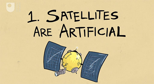 Mythbusting moons, one, satellites are artificial. No, we began launching artificial satellites into orbit around the Earth in 1957. But satellite describes anything that orbits something else. Technically, the planets, comets, asteroids, and so on are all satellites of the Sun.