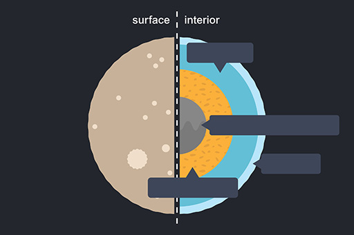 For each diagram, try to work out which parts of each moon’s structure the empty labels are referring to.